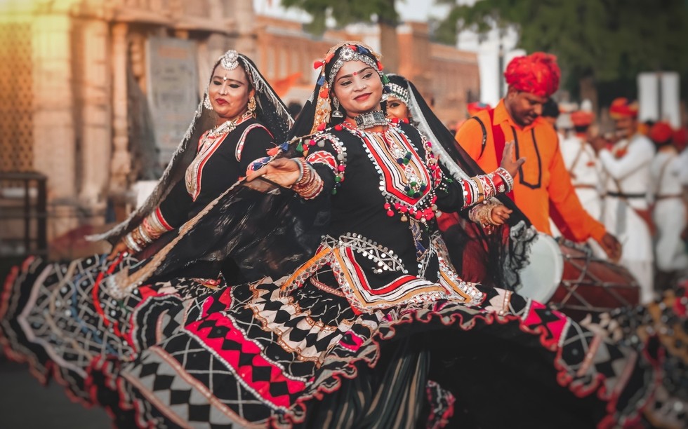 Songs and dances are an expression of the Kalbelia community’s traditional way of life. Once professional snake handlers, Kalbelia today evoke their former occupation in music and dance that is evolving in new and creative ways. Today, women in flowing black skirts dance and swirl, replicating the movements of a serpent, while men accompany them on the khanjari percussion instrument and the poongi, a woodwind instrument traditionally played to capture snakes. The dancers wear traditional tattoo designs, jewellery and garments richly embroidered with small mirrors and silver thread. Kalbelia songs disseminate mythological knowledge through stories, while special traditional dances are performed during Holi, the festival of colours. The songs also demonstrate the poetic acumen of the Kalbelia, who are reputed to compose lyrics spontaneously and improvise songs during performances. Transmitted from generation to generation, the songs and dances form part of an oral tradition for which no texts or training manuals exist. Song and dance are a matter of pride for the Kalbelia community, and a marker of their identity at a time when their traditional travelling lifestyle and role in rural society are diminishing. They demonstrate their community’s attempt to revitalize its cultural heritage and adapt it to changing socioeconomic conditions.